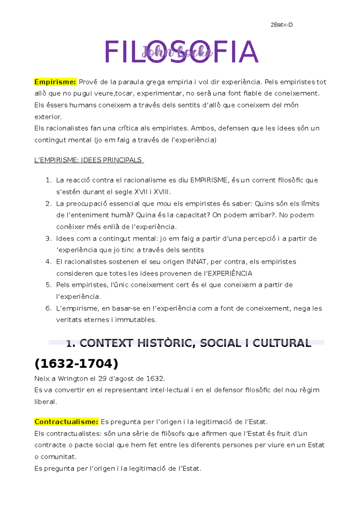 Locke apunts 2n Bat FILOSOFIA Empirisme Prové de la paraula grega
