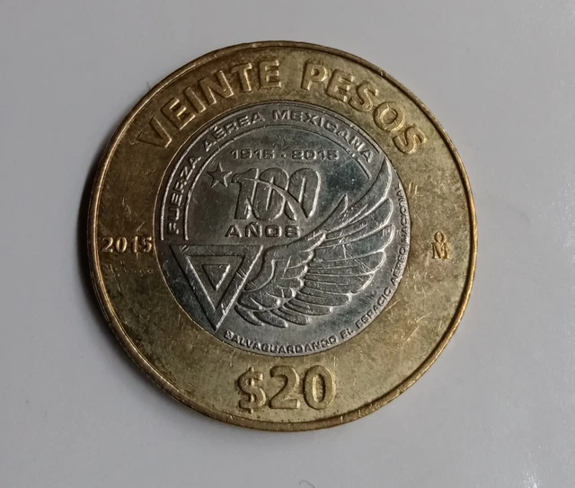 Descripción. Moneda 20 pesos conmemorativa de 100 años de la fuerza aérea Mexicana. Año de emisión: 2015. Varias disponibles! El pago ya incluye envío GRATIS hasta tu domicilio vía ESTAFETA. Esta moneda no le puede faltar a tu colección! Revisa nuestras otras publicaciones, tenemos más monedas. Respondemos cualquier duda en los.