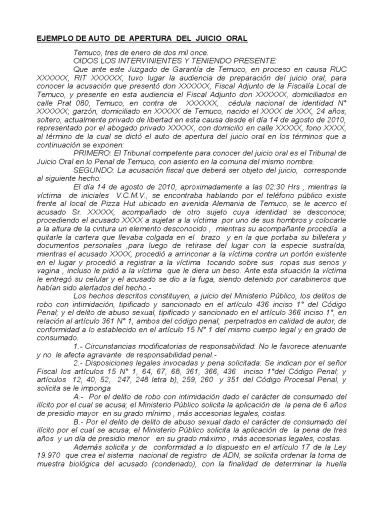 Ejemplo de Auto de Apertura Del Juicio Oral Robbery Criminal Law