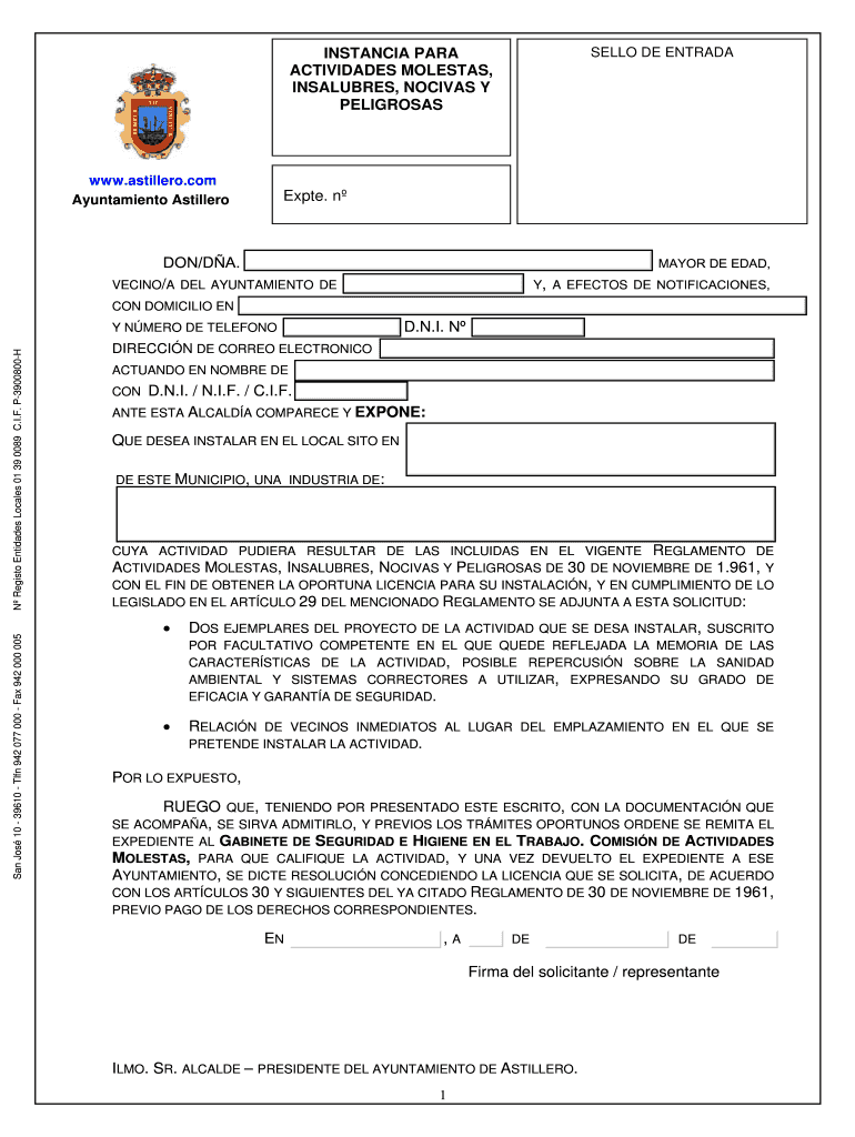 Completable En línea astillero Modelo de solicitud actividades molestas, insalubres, nocivas y