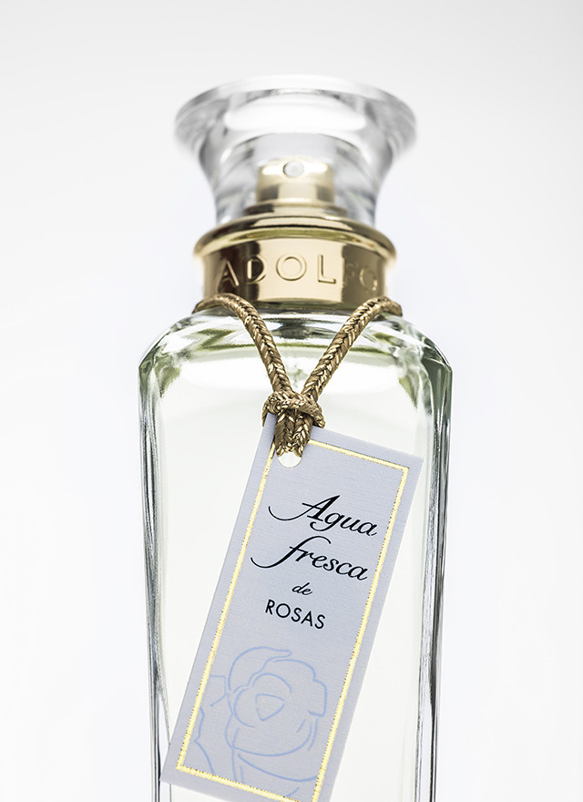 Product details. Adolfo Dominguez launches Agua Fresca de Rosas Blancas in 2013. The new fragrance is a new interpretation of the renowned Agua Fresca de Rosas edition from 1995, announced as more modern, elegant and delicate, inspired by white roses. Top notes: fresh ozone accord, yuzu, mandarin, grapefruit and galbanum.