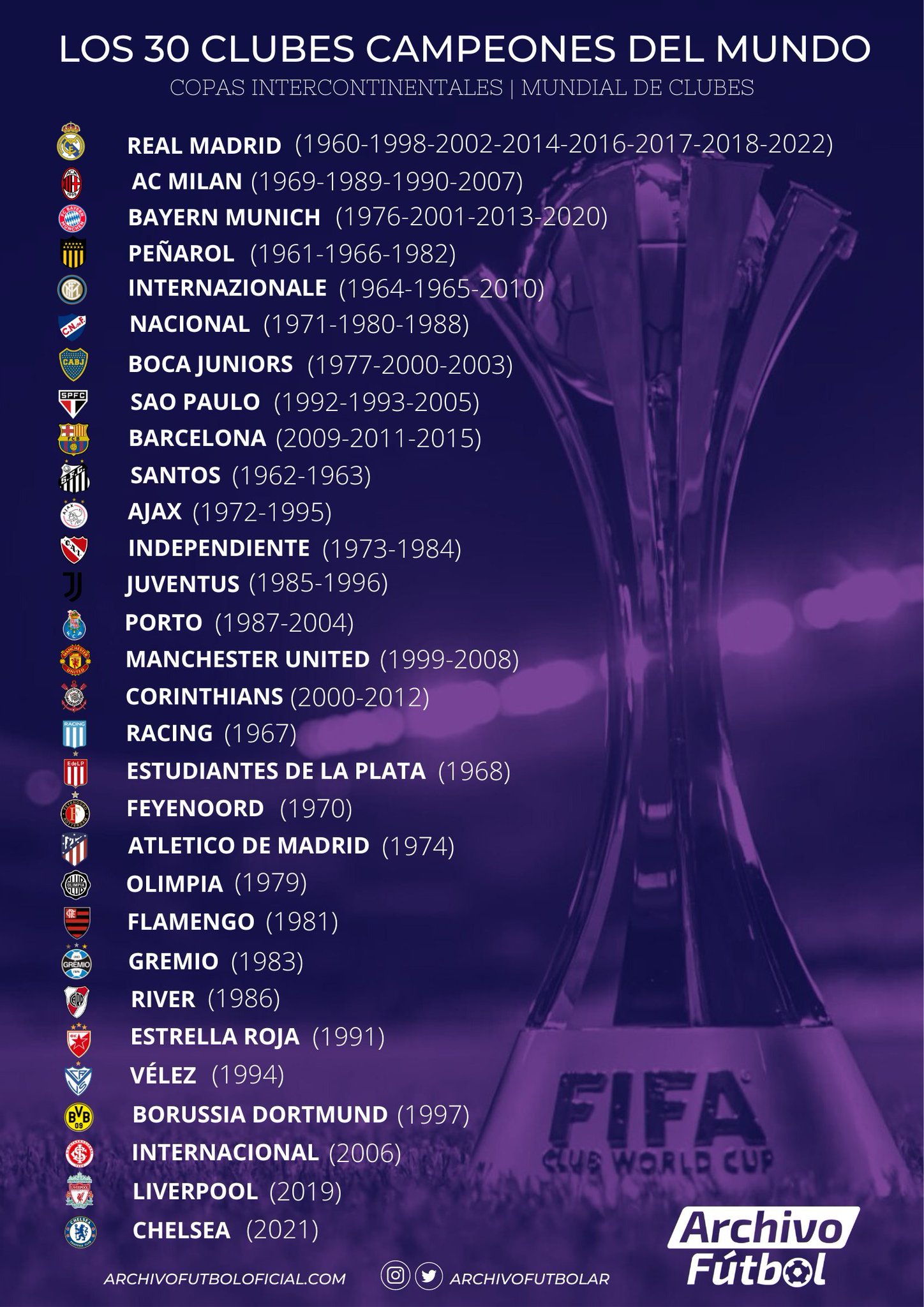 Todos los campeones del mundial de clubes desde 1960 FutDados