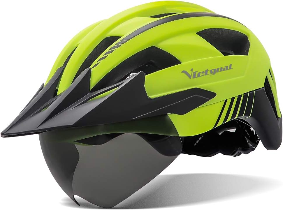 VICTGOAL Casco Bici Casco MTB Uomo con Luce LED, Occhiali Protettivi