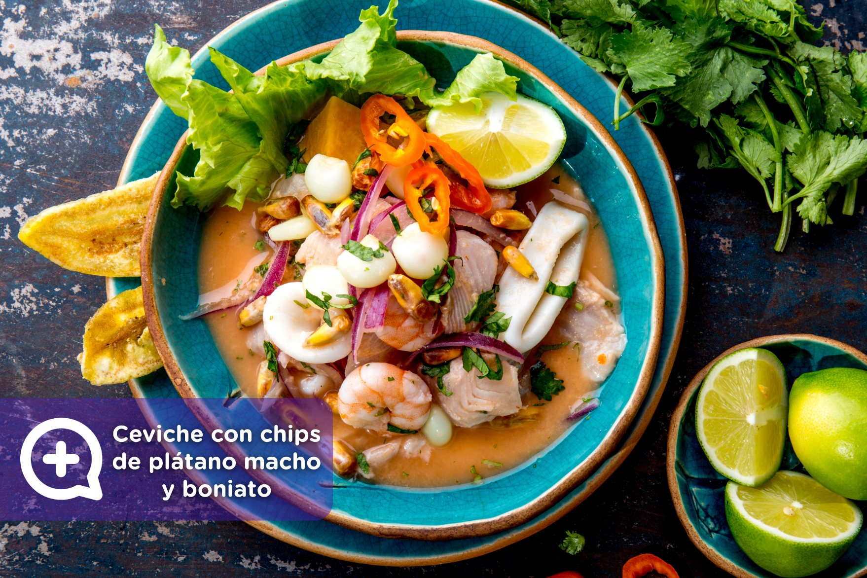 Receta Ceviche con chips de plátano macho y boniato mediQuo
