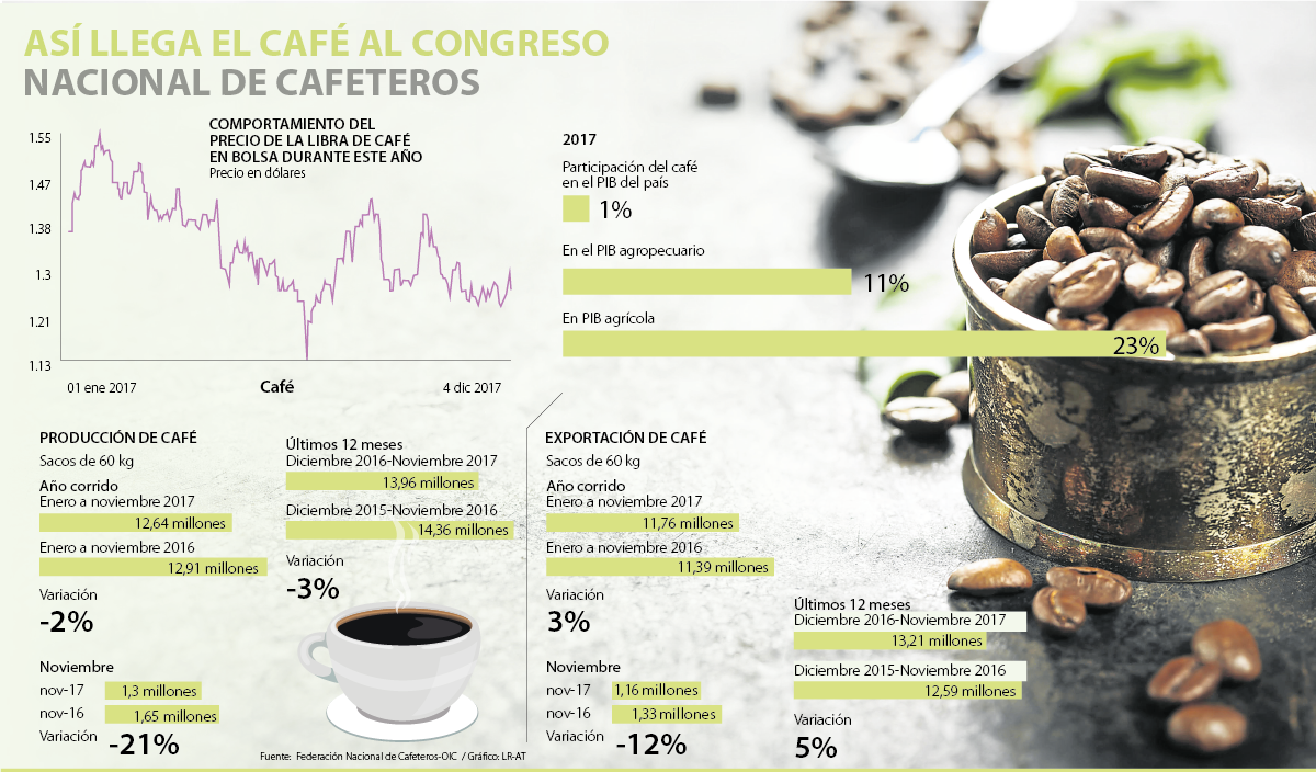 Precio promedio del café ha caído 10 frente a 2016 y se ha cotizado en promedio a US1,26