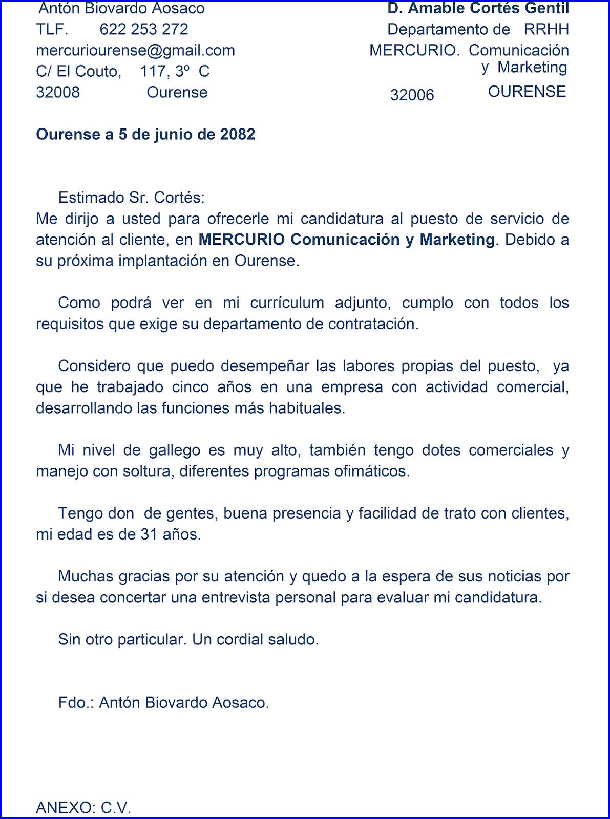 MERCURIO. Comunicación y Marketing CARTA DE DEMANDA DE EMPLEO. Norma