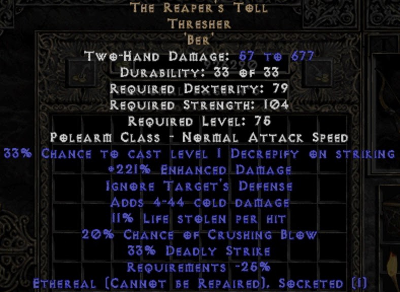 Best cRPGs ETHEREAL REAPER'S TOLL, Diablo 2 Resurrected