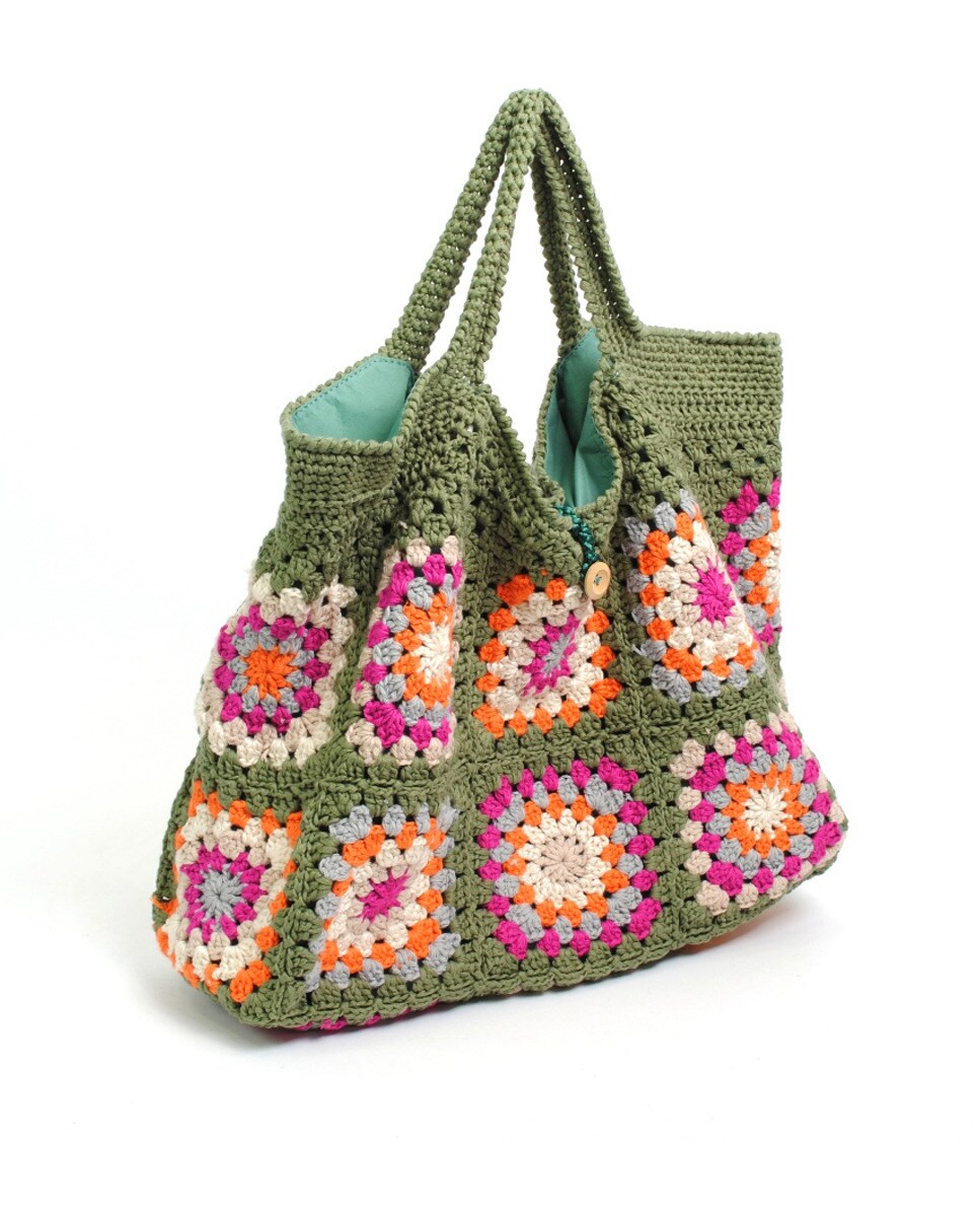Bolso shopper grande Martina K de crochet en kaki con mandala multicolor · Martina K · Moda · El