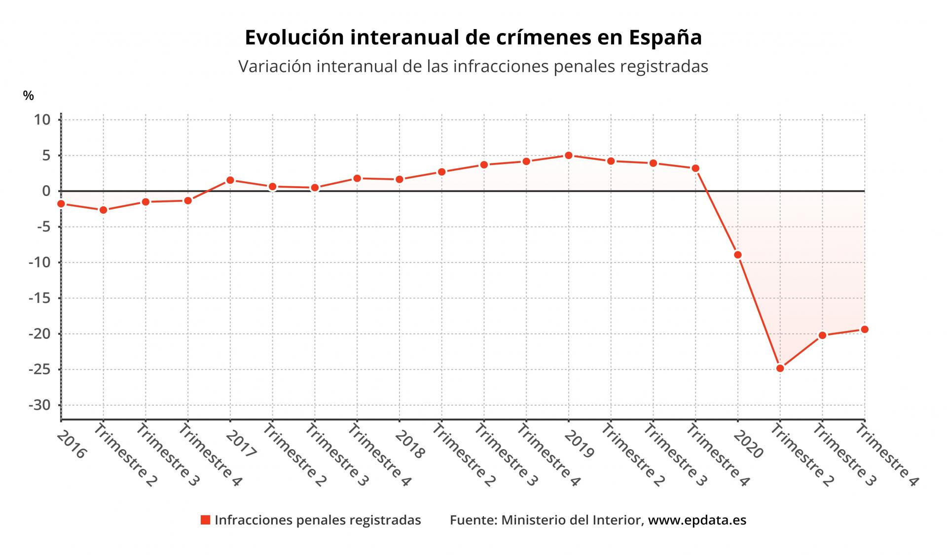 Madrid - Feb 21, 2022 - 13:27 ACTUALIZADO: Feb 21, 2022 - 13:34 EST. El Balance de Criminalidad del año 2021, presentado este lunes por el Ministerio del Interior, registra una tasa de.