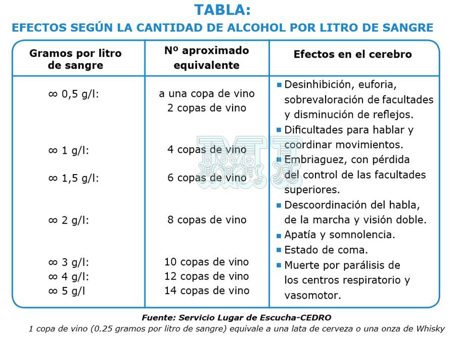 Tabla Efectos según la cantidad de alcohol por litro de sangre