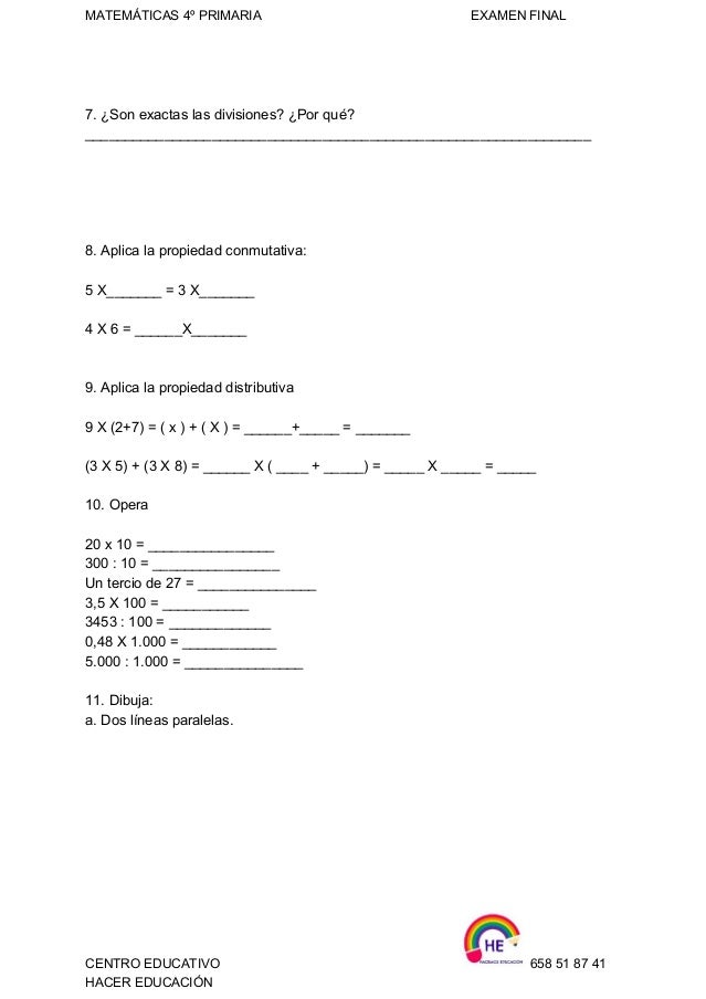 Examenes Matematicas 4 Primaria Santillana Examenes Matematicas 4