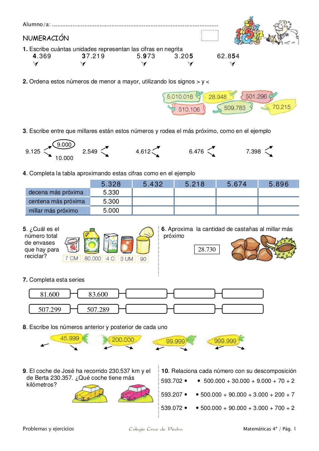Matemáticas. Fichas para cuarto de primaria Matematicas cuarto grado