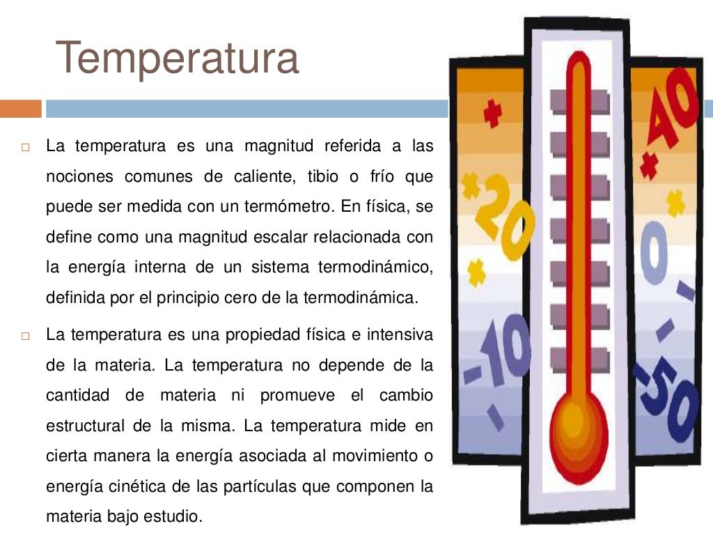 Además, tipos de temperaturas y diferencias con el calor. La temperatura está relacionada con la noción de frío y de calor. ¿Qué es la temperatura? La temperatura es una magnitud escalar que se define como la cantidad de energía cinética de las partículas de una masa gaseosa, líquida o sólida. Cuanto mayor es la velocidad de las.