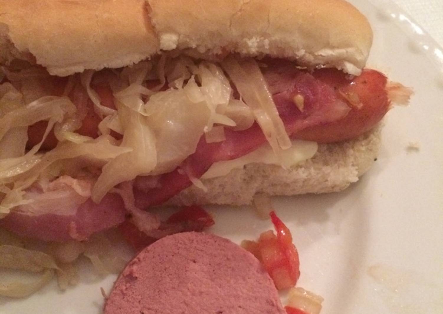 Salchichas alemanas con chucrut, salsa criolla y leberwurst Receta de