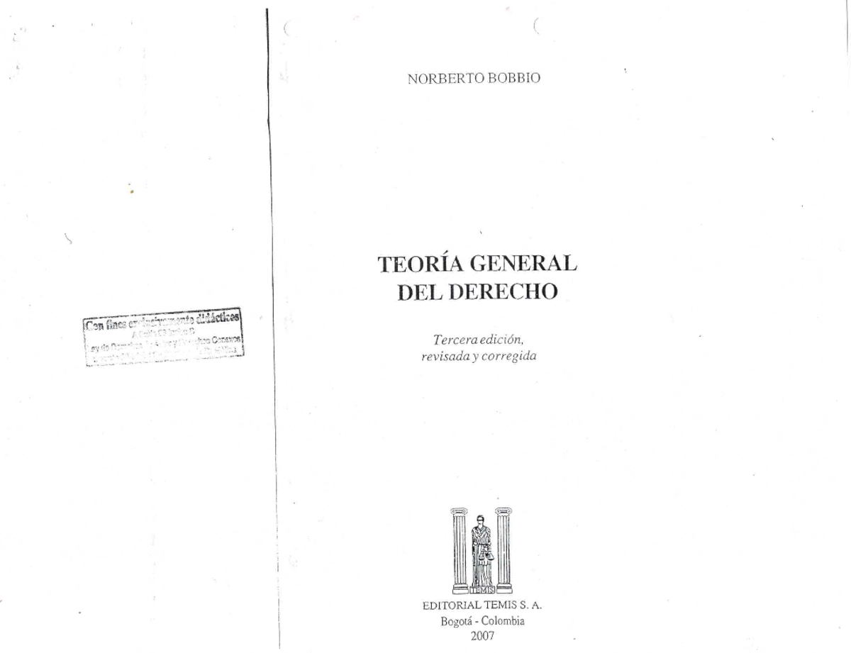 Download Norberto Bobbio - Teoría General Del Derecho (0, Temis) Type: PDF. Date: July 2019. Size: 54.5MB. Author: Bernardo J. Mundaca. This document was uploaded by user and they confirmed that they have the permission to share it. If you are author or own the copyright of this book, please report to us by using this DMCA report form.