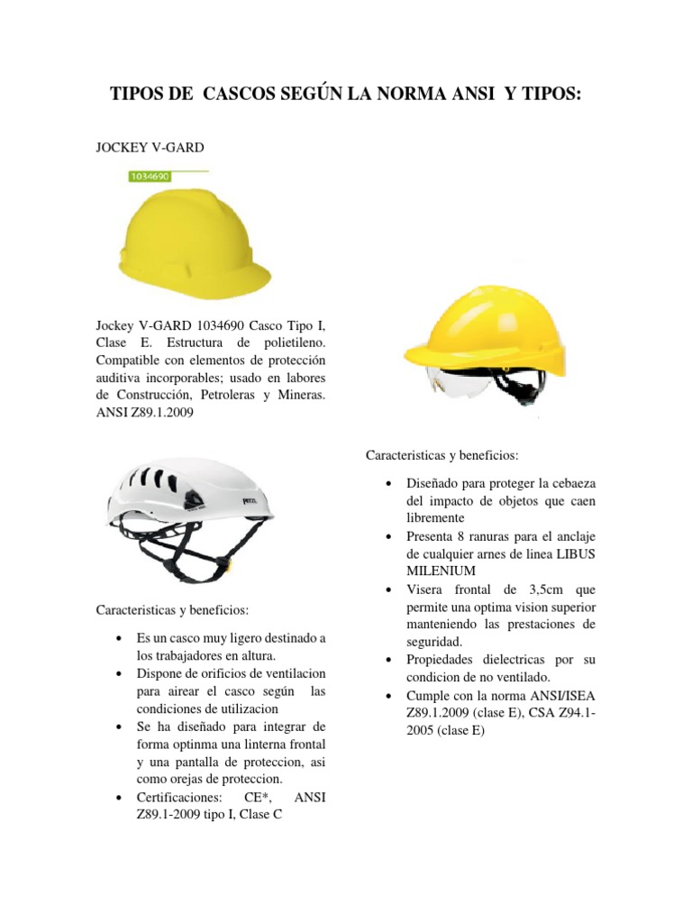 Tipos de Cascos Según La Norma Ansi y Tipos PDF Guante Casco