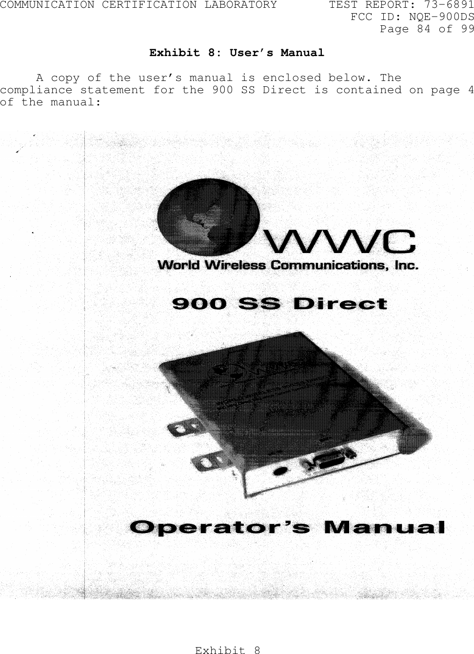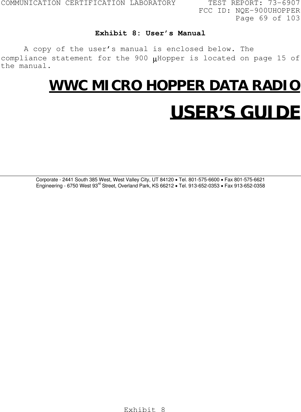 World Wireless Communications 900UHOPPER Data Module User Manual Report